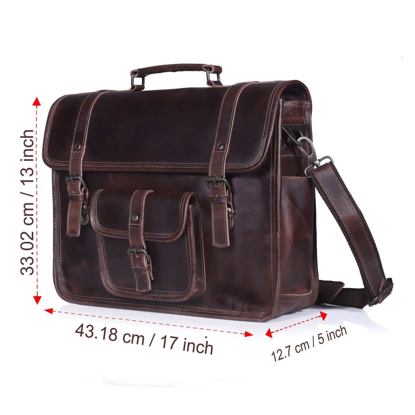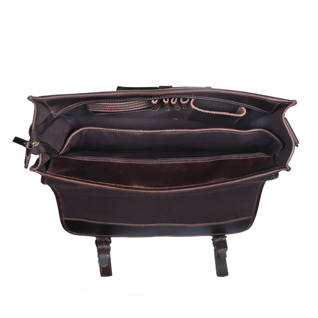 Inside, you’ll find a spacious, well-organized interior with dedicated compartments for your laptop, documents, and essentials. The secure flap closure and durable brass hardware add a refined touch, ensuring both protection and style. An adjustable leather strap allows for comfortable crossbody wear, giving you effortless movement throughout your day.
