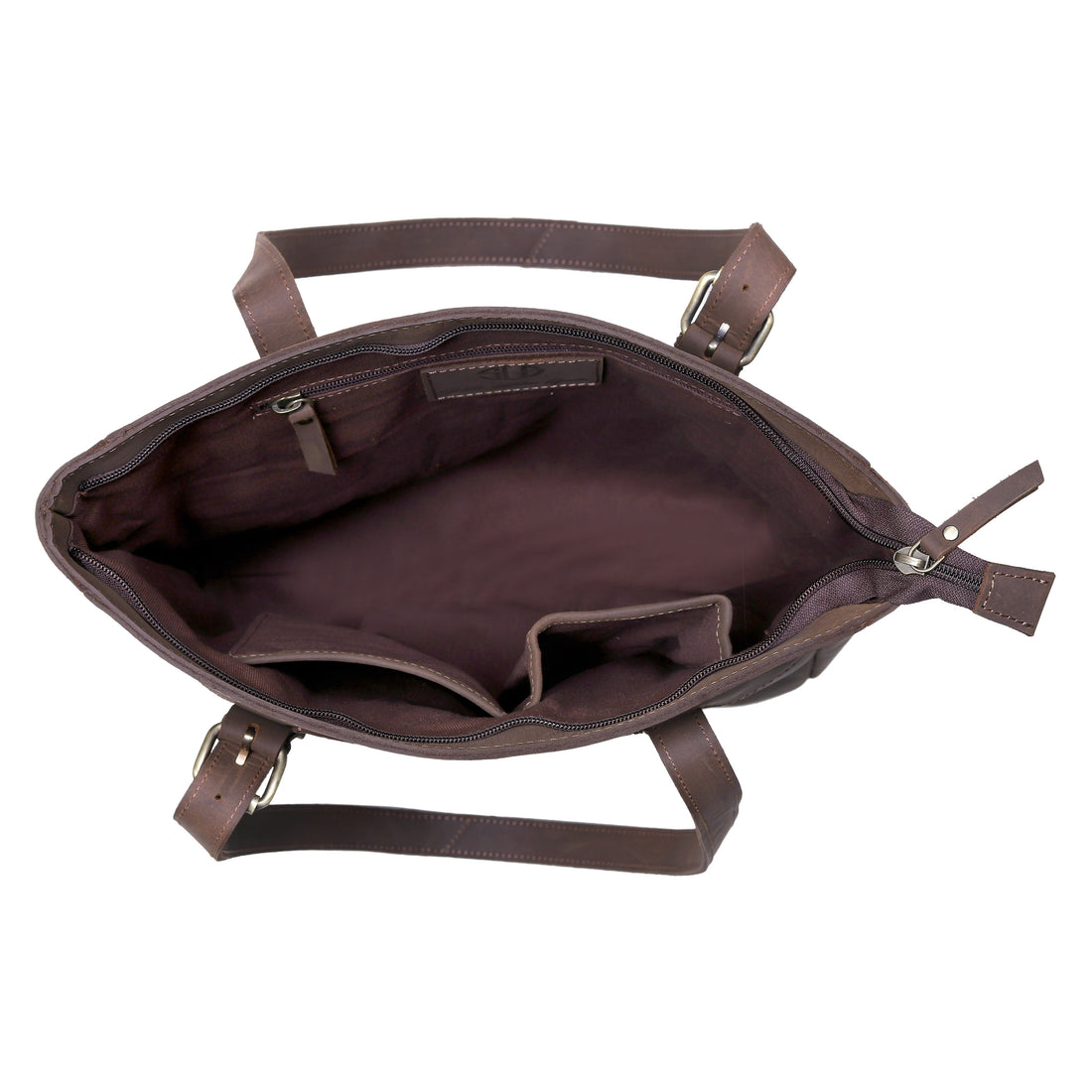 Designed for functionality and sophistication, the spacious interior easily accommodates your daily essentials—laptop, wallet, books, and more—while interior pockets keep smaller items organized. Sturdy leather handles ensure comfortable carrying, and the reinforced base provides extra support for heavier loads.
