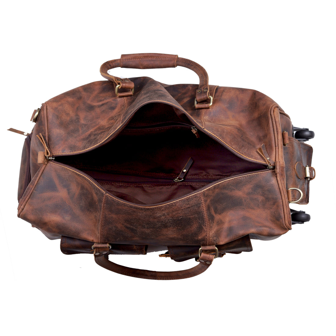 Embark on every journey with confidence and timeless elegance. The Legendary Vintage Classic Buffalo Leather Travel Duffle Bag with Trolley combines the rugged allure of hand-finished buffalo leather with the modern ease of a rolling trolley system. Designed for travelers who refuse to compromise on style or functionality, this bag is as legendary in performance as it is in presence.
