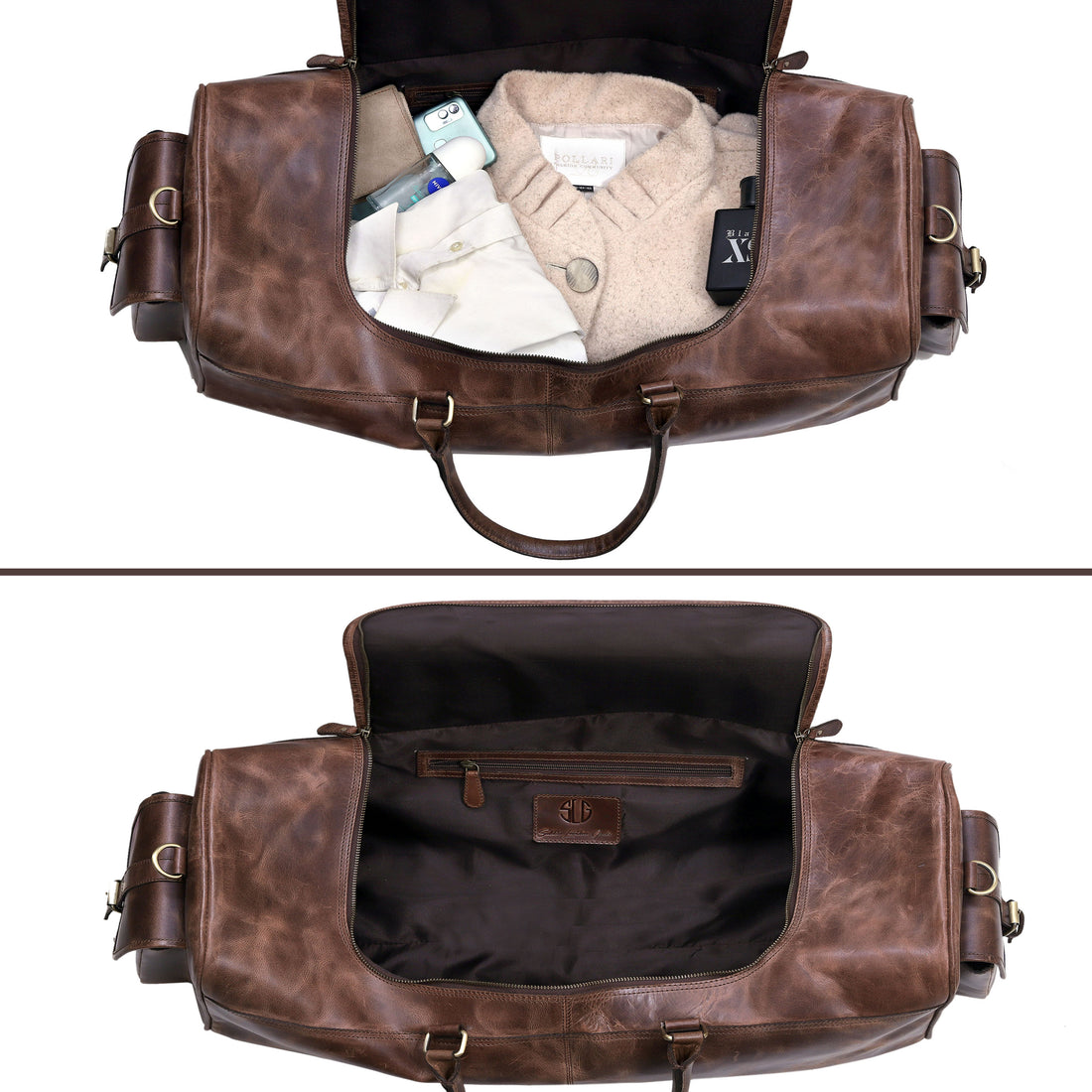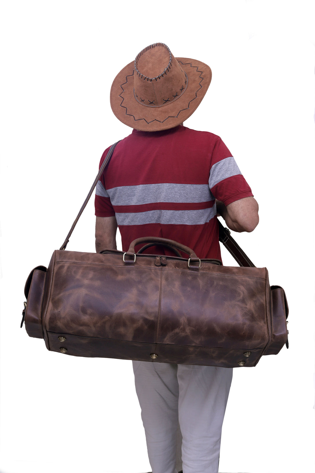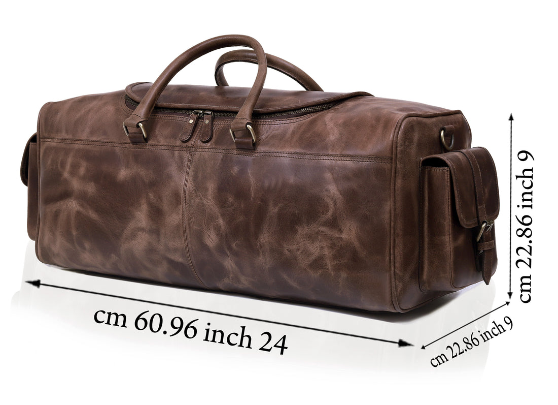 The Overnight Leather Duffle Bag is designed for those who seek a perfect balance of elegance and functionality. Whether you're heading to the gym, packing for a quick overnight trip, or carrying your sports gear, this bag provides ample space and a sophisticated look. Made from premium full-grain leather, it is built to withstand daily use while developing a rich patina over time. The Overnight Leather Duffle Bag is more than just a bag—it’s a reliable and stylish companion for those always on the move. Whether for travel, fitness, or daily use, it ensures you stay organized while exuding effortless sophistication.