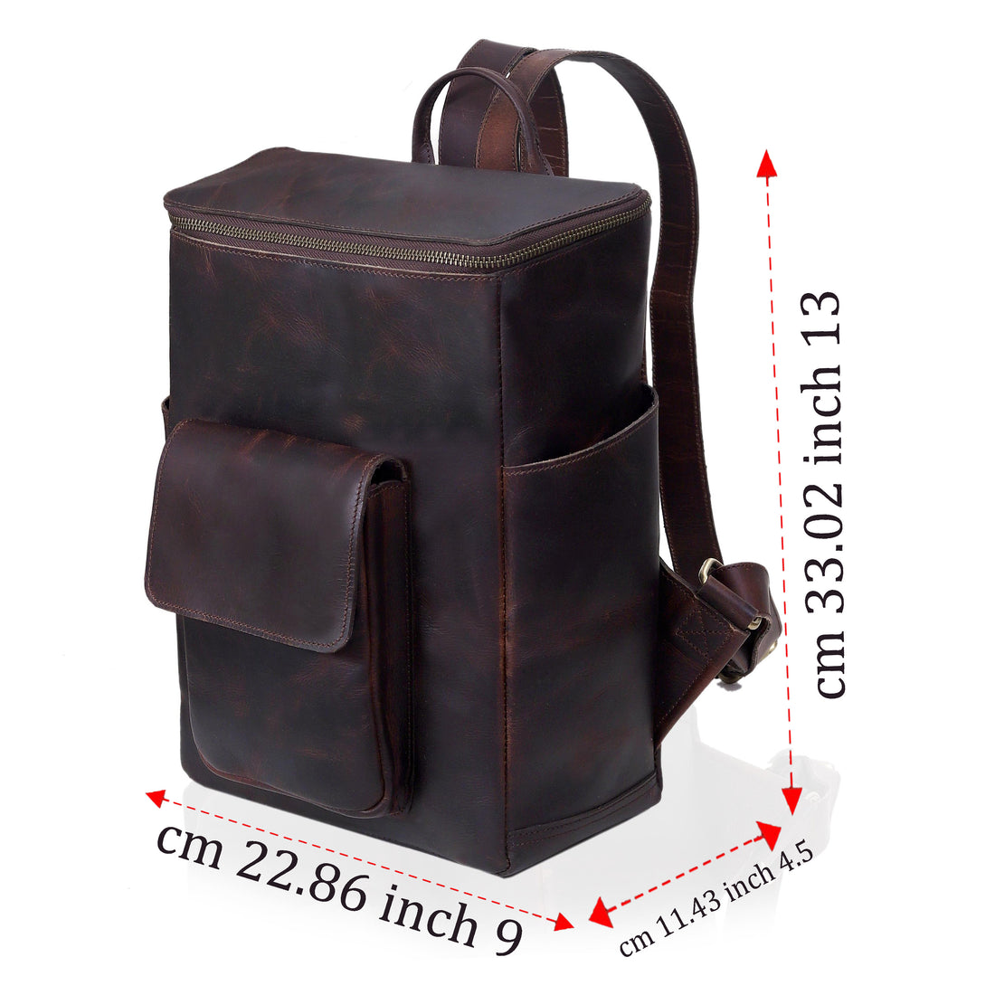 Elevate your everyday carry with this timeless leather daypack, designed for both style and functionality. Crafted from premium full-grain buffalo leather, this backpack offers a rugged yet refined look that only improves with age. The spacious main compartment easily fits your daily essentials — from a laptop and notebooks to a change of clothes or travel gear — while multiple interior and exterior pockets keep your items organized and within reach.