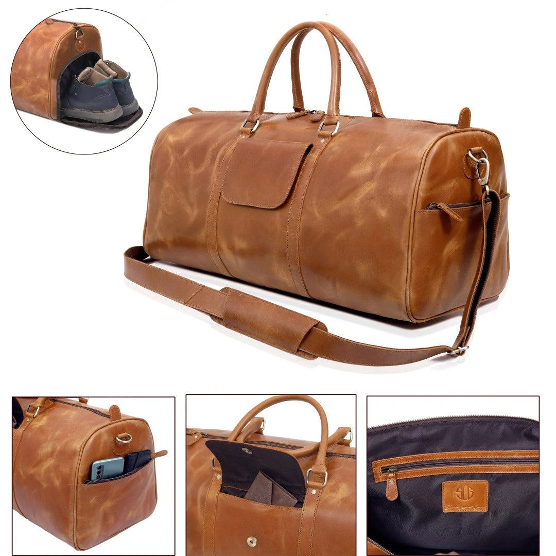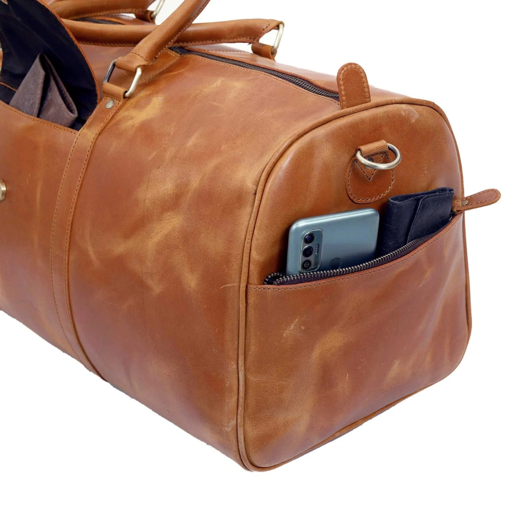 The Classic Weekender Duffle Bag is the perfect travel companion for those who appreciate style, durability, and practicality. Crafted from premium full-grain leather, this bag is designed to age beautifully, developing a rich patina over time. Whether you're heading out for a weekend getaway, a business trip, or a gym session, this duffle bag offers ample space and an effortlessly sophisticated look. The Duffle Bag is more than just a travel bag—it’s an investment in quality and elegance. Whether you're heading to a luxury resort or a rustic retreat, this duffle bag ensures you travel with confidence, sophistication, and convenience.