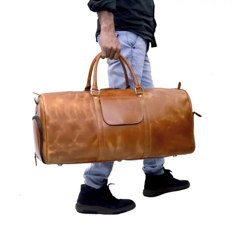 The Classic Weekender Duffle Bag is the perfect travel companion for those who appreciate style, durability, and practicality. Crafted from premium full-grain leather, this bag is designed to age beautifully, developing a rich patina over time. Whether you're heading out for a weekend getaway, a business trip, or a gym session, this duffle bag offers ample space and an effortlessly sophisticated look. The Duffle Bag is more than just a travel bag—it’s an investment in quality and elegance. Whether you're heading to a luxury resort or a rustic retreat, this duffle bag ensures you travel with confidence, sophistication, and convenience.