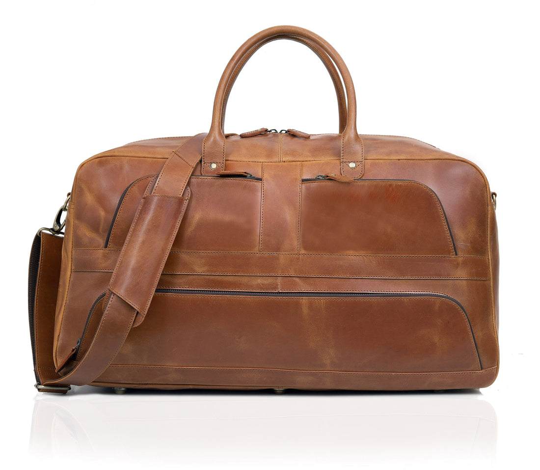 Leather Travel Duffel Bag - Premium Leather Weekender Bag