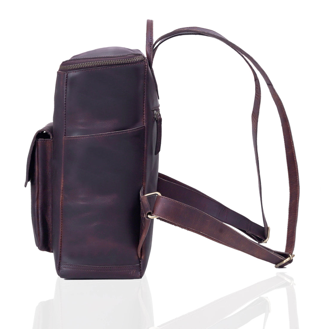 Elevate your everyday carry with this timeless leather daypack, designed for both style and functionality. Crafted from premium full-grain buffalo leather, this backpack offers a rugged yet refined look that only improves with age. The spacious main compartment easily fits your daily essentials — from a laptop and notebooks to a change of clothes or travel gear — while multiple interior and exterior pockets keep your items organized and within reach.