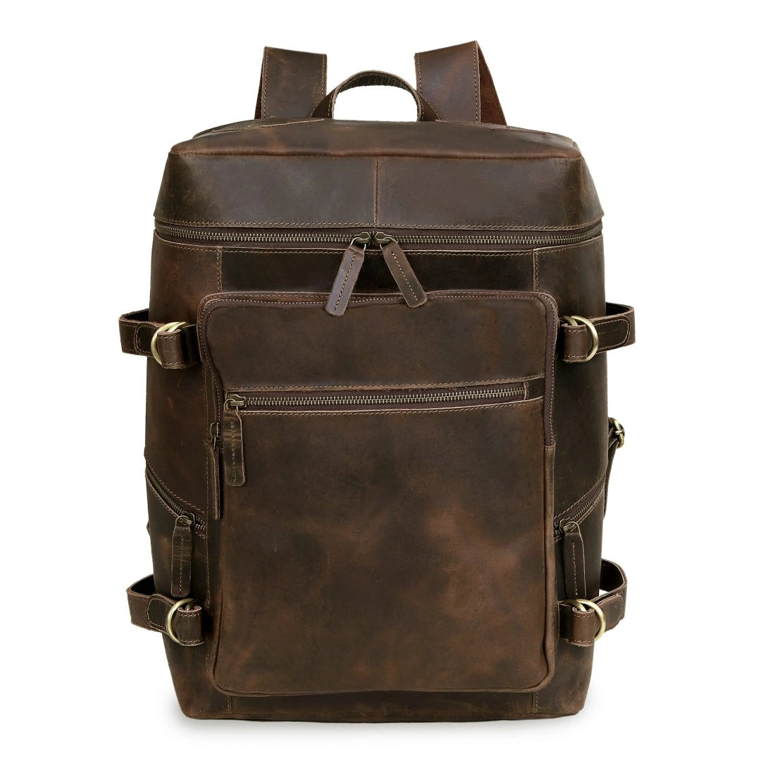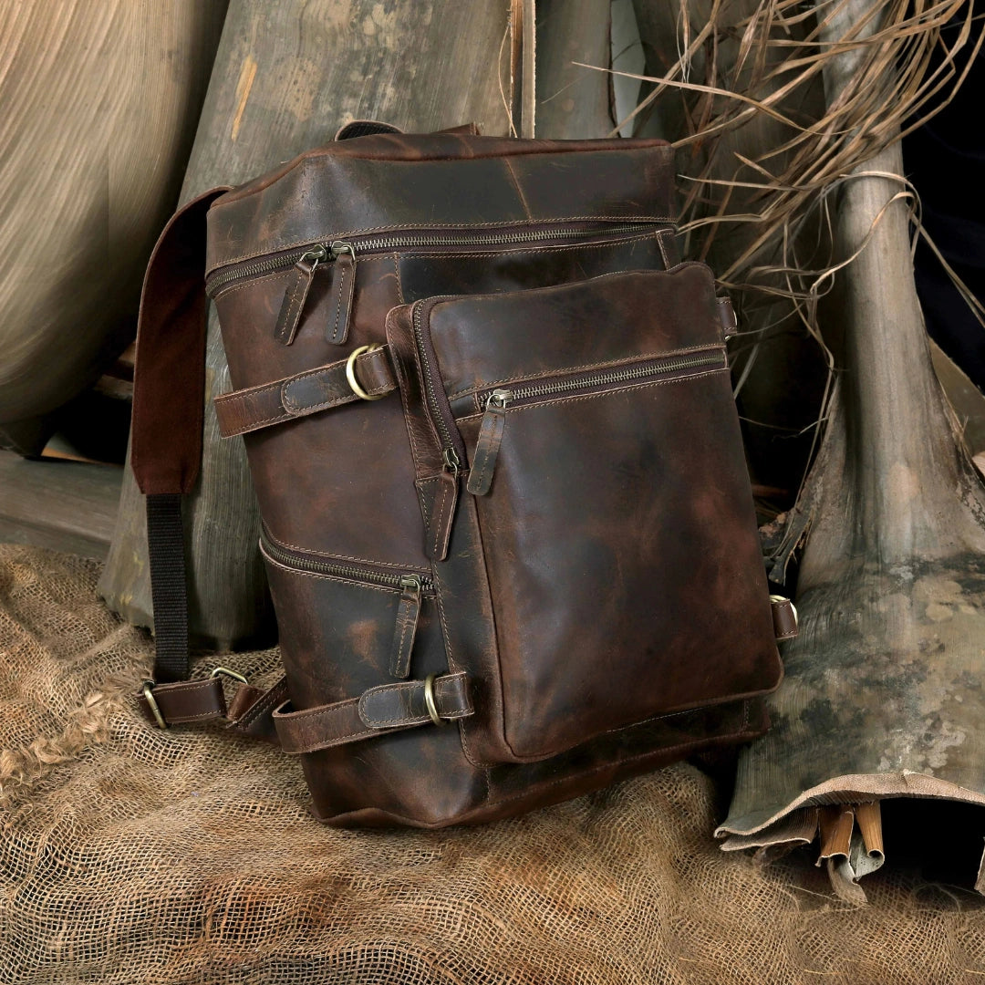 The Retro Leather Buffalo Backpack carries a timeless, vintage charm inspired by classic design and handcrafted leather artistry. Made from strong and naturally textured buffalo leather, it offers a rugged yet elegant appearance, where the grain patterns and subtle natural marks make every backpack look unique. The leather feels solid, durable and authentic, giving the bag a rich, old-school character rather than a polished or flashy finish.