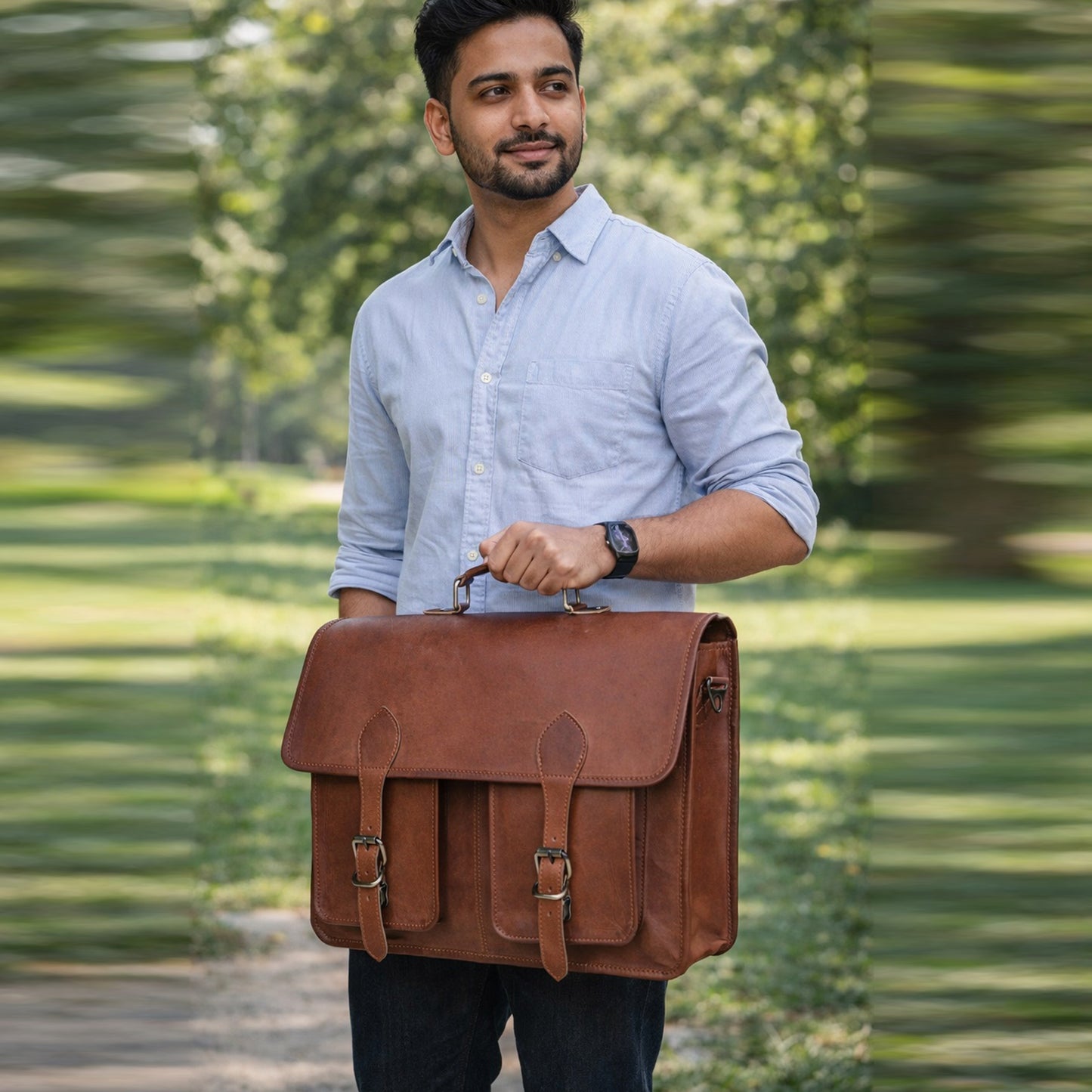 Handcrafted from carefully selected full-grain leather, the bag carries the natural markings of the hide, making each piece unmistakably unique. Over time, the leather softens and deepens in character, telling a story shaped by movement, ambition, and experience.